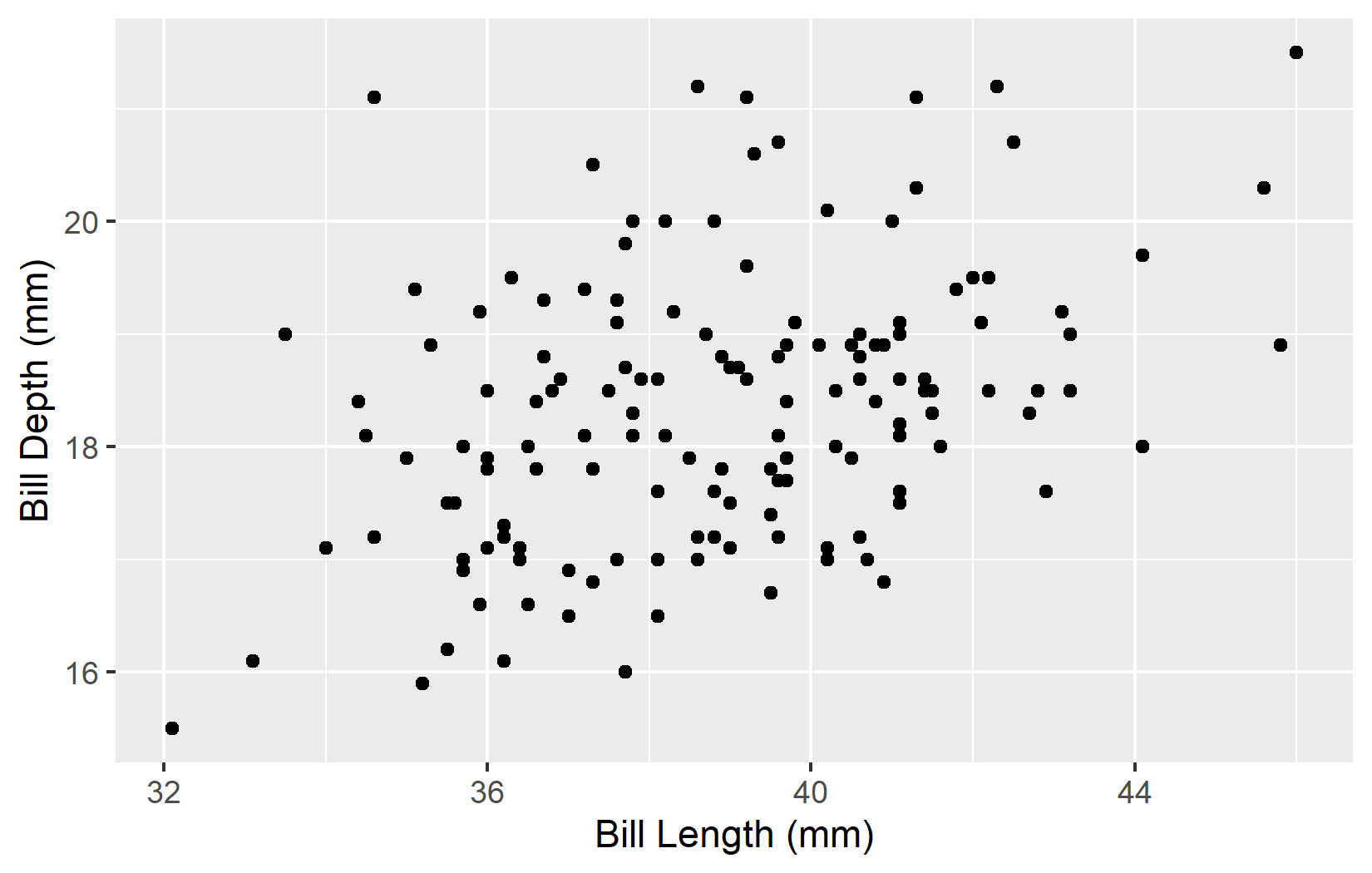 ggplot(adelie, aes(x = bill_length_mm, y = bill_depth_mm)) +