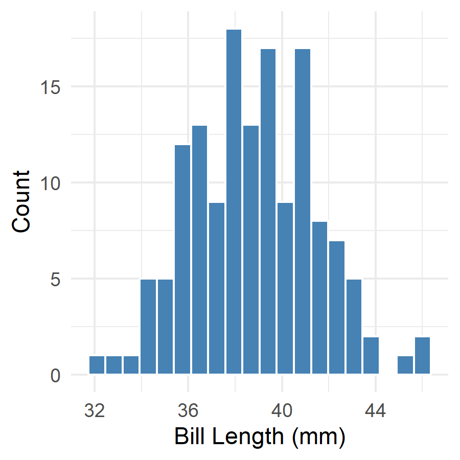 labs(x = "Bill Length (mm)", y = "Count") +