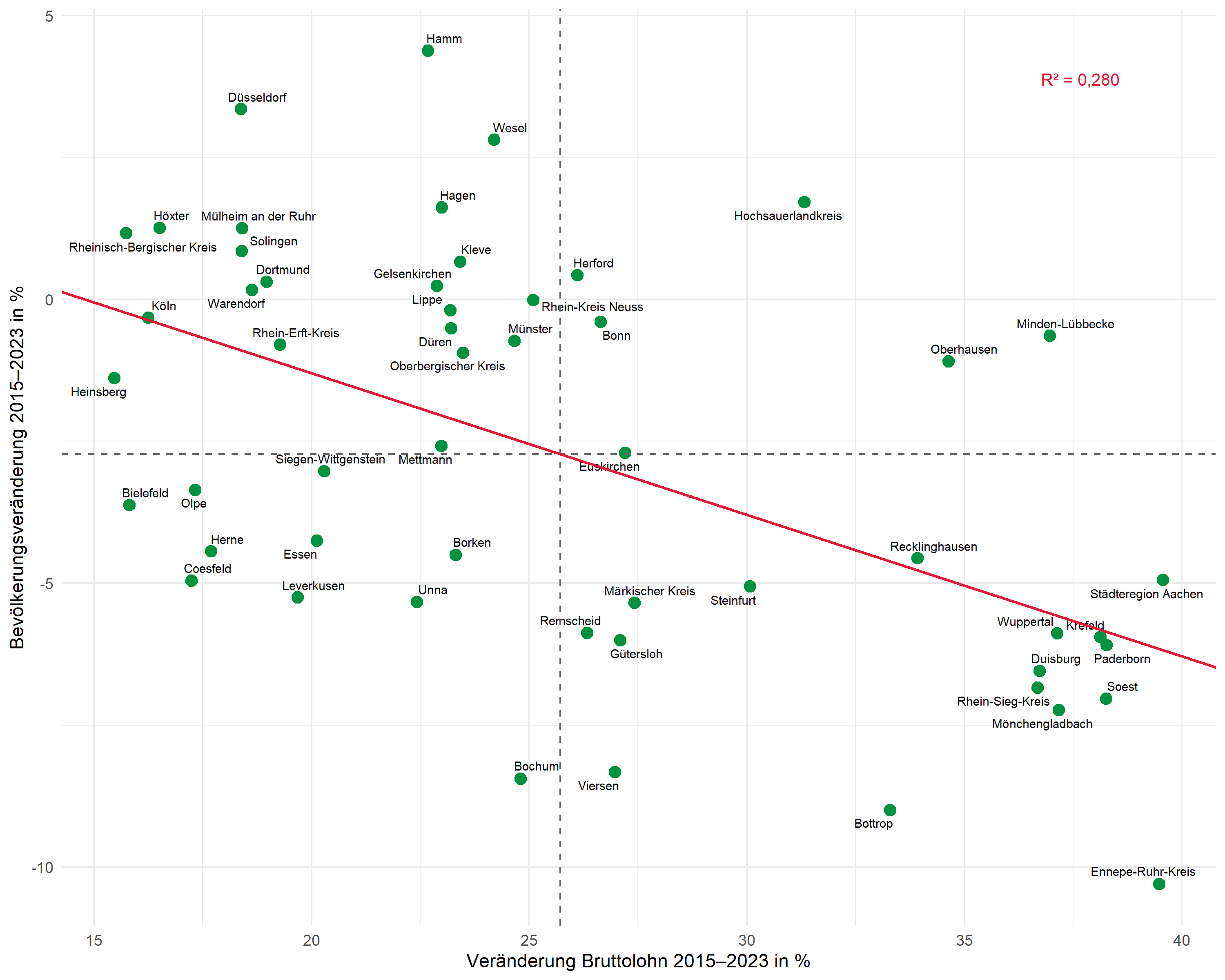 # Bevölkerungsveränderung: korreliert negativ mit Lohnentwicklung
